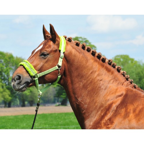 Ohlávka s nastavitelným nátylníkem. Nánosník a lícnice jsou pošity třpytivým páskem v barvě ohlávky. K dodání v různých barvách.