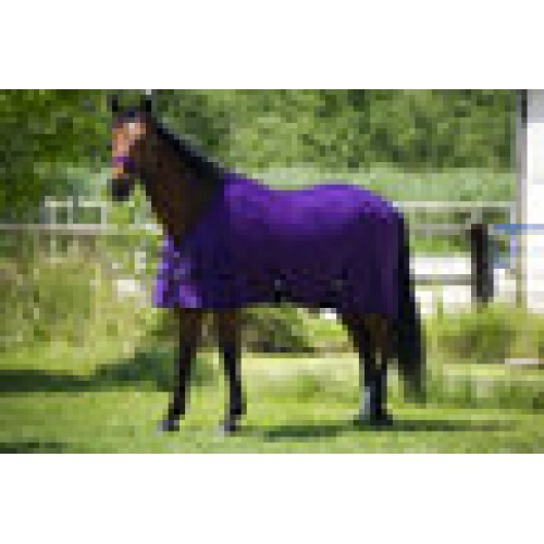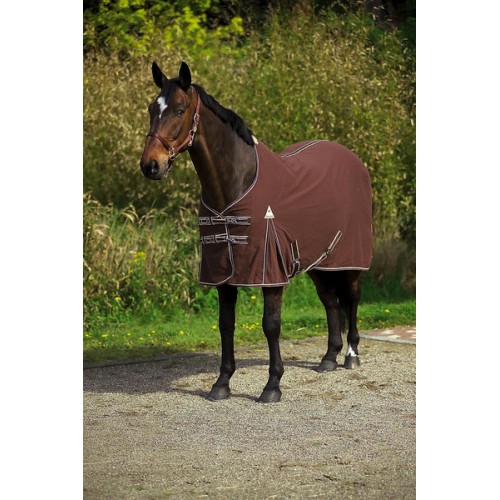 Pohodlná bavlněná letní deka, křížové popruhy na břiše, šňůra na ocas, zpevněná hrudní část s popruhy na karabinky pro rychlé upínání, sklady pro volný pohyb předních nohou. Oblast kohoutku podložena syntetickou ovčí kůží.Lemy a prošívání v kontrastních barvách.
