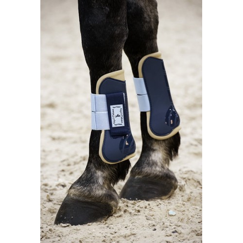 Šlachovky a strouhavky oblíbené kolekce Equi-Theme Stripe. Šlachovky s anatomickým výřezem pro lepší flexibilitu mají upevnění na dva vodorovné suché zipy a jeden svislý zajišťovací. Strouhavky mají jeden suchý zip vodorovně a též zajišťovací svislý.