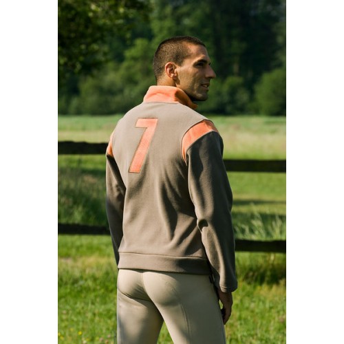 Mikina s motivem čísla 7, s kontrastními motivy a vsadkami. Stojáček na zip.