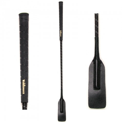 Kvalitní skokový bičík s nízkou hmotností, speciální rukojetí a širokou plácačkou v černo-stříbrném provedení.