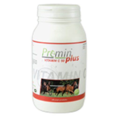 Premin® plus VITAMIN C 50 je krmný doplněk určený pro všechny kategorie koní. Slouží jako doplněk vitaminu C ve stresovém období - podporuje imunitní systém, v období rekonvalescence , na podporu hojení ran, při krvácení a anémii a v období porodu. Vitamin C působí i jako antioxidant.