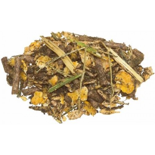 Revitalizující a občerstvující bylinné müsli bez ovsa. Vyhledávané přírodní byliny v třené a řezané formě pro vitalitu, dobré zdraví a volné dýchací cesty. Jako doplněk a obohacení denního krmiva, ideální k obilí, peletám nebo müsli.